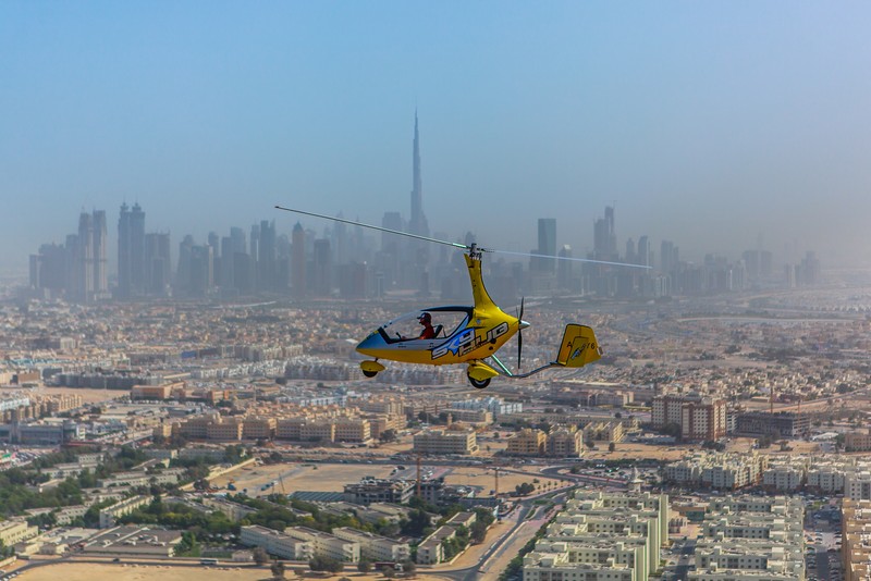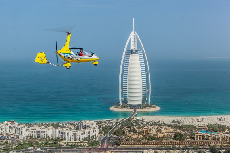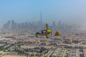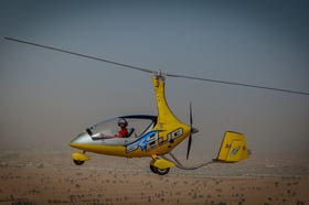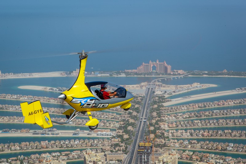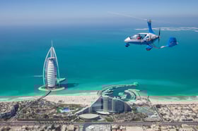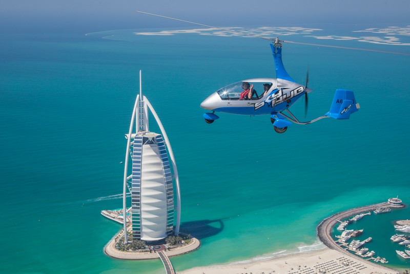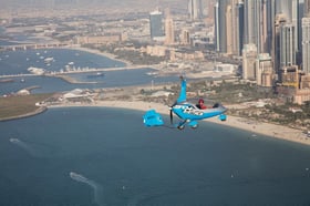 Experience a thrilling flight over Dubai's iconic sights with the gyrocopter. This exhilarating adventure allows you to soar above renowned landmarks like Palm Jumeirah, Ain Dubai, Atlantis Hotel, and Burj Al Arab, providing a unique opportunity to witness these magnificent sights from a bird's-eye perspective.