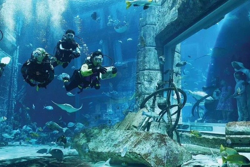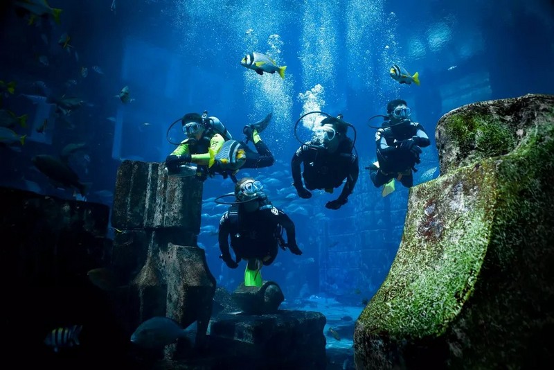 Encounter 65,000 marine creatures, from majestic sharks and graceful rays to a myriad of vibrant species, as you explore the enigmatic depths of Atlantis, the lost city. Dive into a world of exhilarating experiences in Dubai, where you can embark on thrilling adventures such as aquarium scuba diving, snorkeling, and strolling through Poseidon’s submerged domain with Aquatrek.