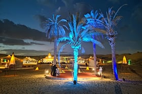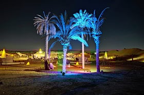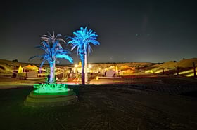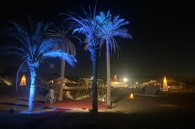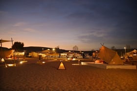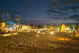 Enjoy a premium desert experience like no other with this excursion to the Caravanserai camp outside of Dubai. This camp features many of the desert activities—dune bashing, a camel ride, and a cultural show—but with a modern twist. Enjoy a traditional Emirati welcome at the camp and then sit down to a buffet-style banquet with delicious Arabic food. Your evening culminates with a cultural performance of belly dancing, tanoura, and a fire show