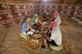 • Arrive at an authentic torch-lit Bedouin Camp and receive a warm Arabic welcoming with coffee and dates.