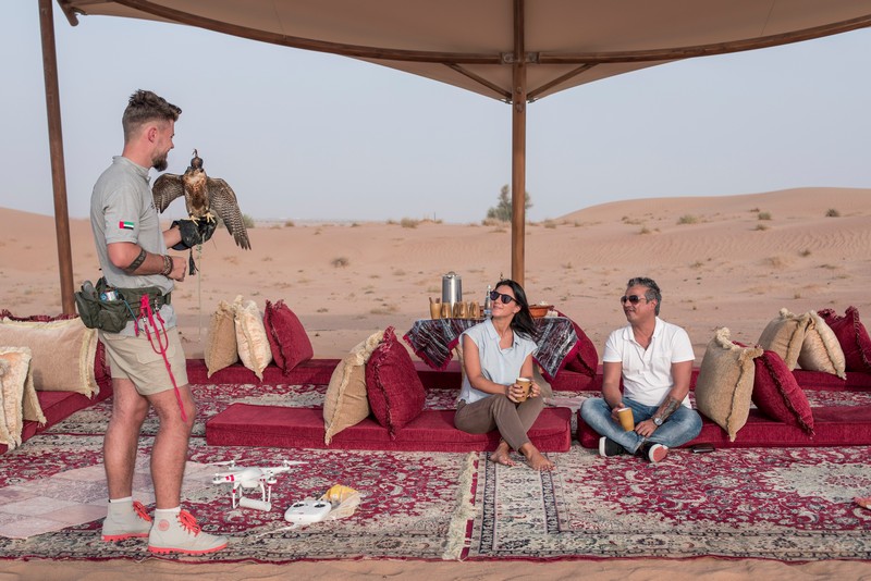 • Partake in a private and interactive falconry demonstration set in a beautiful desert camp.