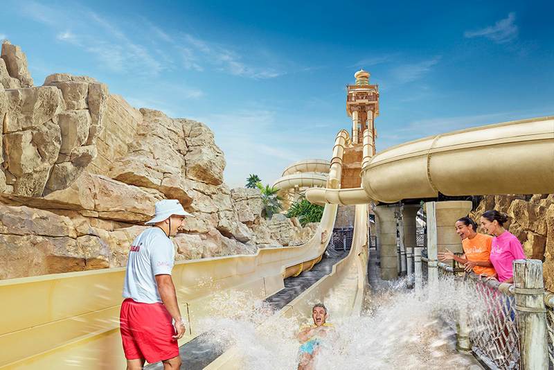 Attractions, including the exhilarating Tantrum Alley and thrilling 105-foot Jumeirah Sceirah.