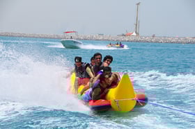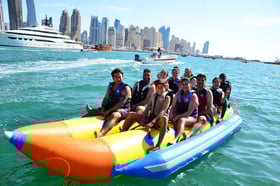 Embark on an exhilarating water adventure that promises endless joy and excitement for you, your friends, and family. The experience involves riding in a vibrant yellow, banana-shaped boat, swiftly towed by a motorboat. Amidst the laughter and amusement, you'll also be treated to unparalleled vistas along Dubai's coastline. Operated by a skilled crew and equipped with comprehensive safety protocols, this activity ensures a memorable and secure journey.