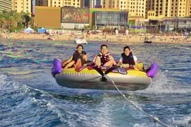 Dubai is renowned for its array of water sports, but have you heard of the captivating Donut ride? It's a distinctive water activity, reminiscent of the banana boat ride, yet it stands out as an exceptional experience. Families are increasingly embracing the Donut ride as their top choice due to its user-friendly nature. Notably, it also offers affordability in the realm of water sports. With its undeniable fun factor, there's a tubing towable that suits everyone perfectly
