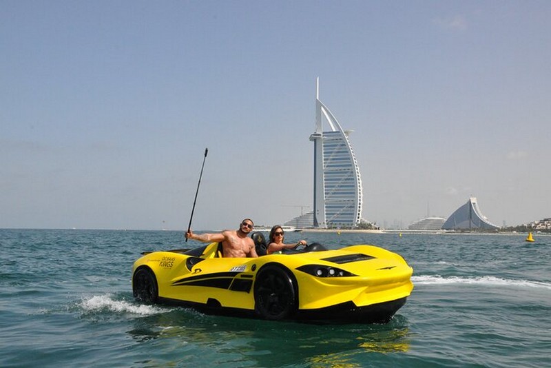 In the vibrant city of Dubai, water sports have taken Marina Bay by storm. Tourists flock to the United Arab Emirates in search of thrilling and unique experiences that diverge from the ordinary. Dubai, known for its opulence and extravagant offerings, boasts an array of popular water activities, including jet skiing, parasailing, flyboarding, wakeboarding, and more. However, a recent addition to Dubai's list of trendy water adventures is the jet car experience. This exciting activity bears a resemblance to jet skiing, but with a twist – participants ride in supercars that mimic the appearance of iconic luxury vehicles like Corvette, Bugatti, Aston Martin, or Ferrari, minus any visible branding. Once seated in these jet cars, tourists can engage the accelerator and reach speeds of up to 70 km/h, all while enjoying the comfort of a windshield, video screen, GPS, and Bluetooth connectivity.