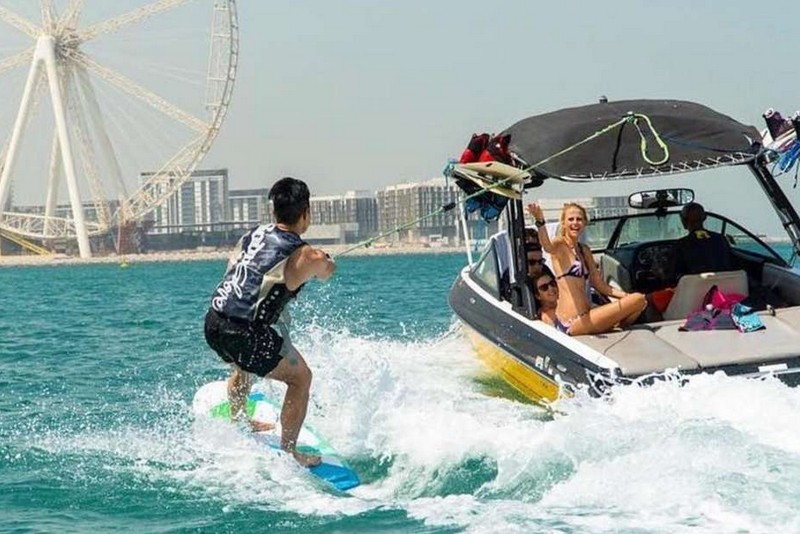 Get ready for an exhilarating sensation as you're towed behind a revving motorboat, reaching speeds of up to 30 miles per hour. Navigate the water's surface with the freedom to execute tricks and revel in the excitement. Wakeboarding is one of Dubai's many water sports that seamlessly blend adventure and sightseeing in a unique fashion, allowing you to glide through the waters while enjoying the surroundings. Dedicated and skilled instructors will provide safety guidelines and essential information beforehand. Don't hesitate any longer – secure your wakeboarding tickets and embark on this heart-pounding adventure today!