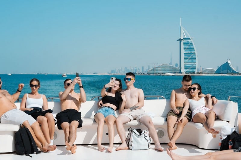Embark on a serene cruise through the captivating city of Dubai, where you can indulge in a leisurely journey while taking in the breathtaking sights of Jumeirah Beach, Blue Water Island, and the iconic Palm Jumeirah.